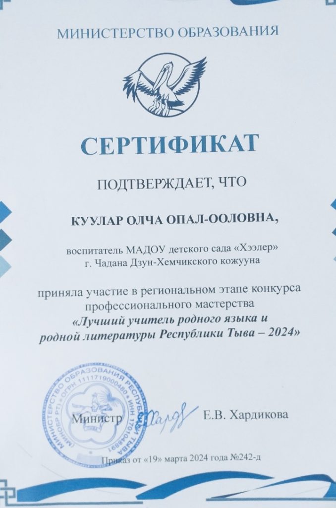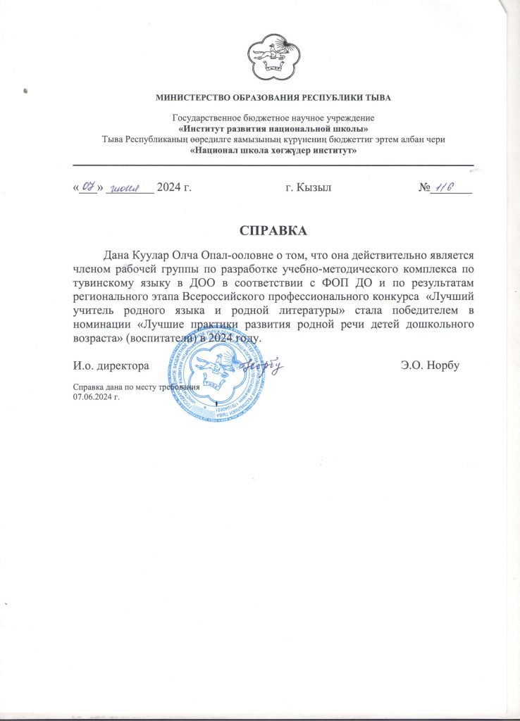 Ф.И.О.: Куулар Олча Опал-ооловна