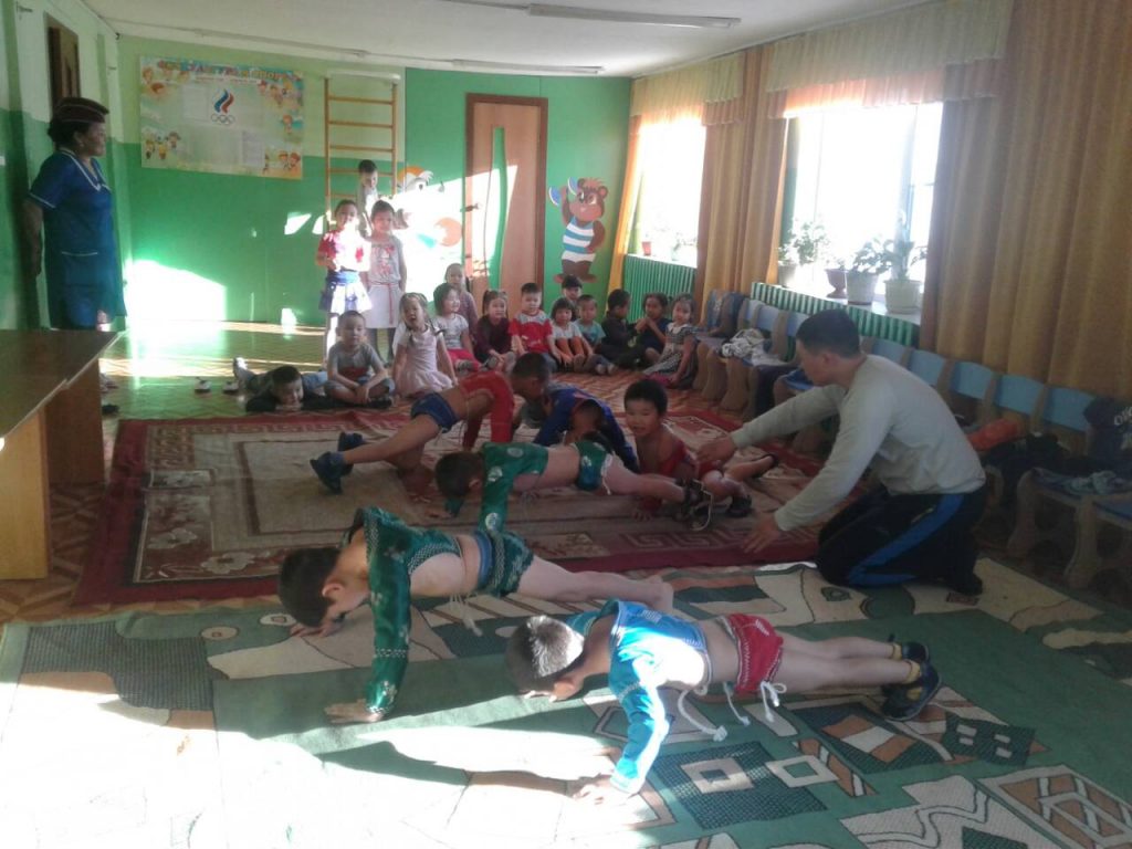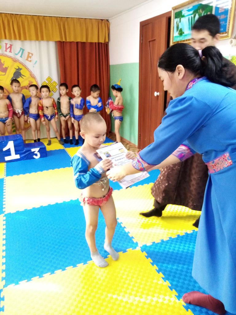 В рамках реализации ведомственного проекта 21 января 2021 года в МАДОУ детском саду «Хээлер» г.Чадаан проведено соревнование по национальной борьбе «Хуреш» среди детей старших групп детского сада. Ведущим соревнования был руководитель физического воспитания Кунзек Чингис Саянович.