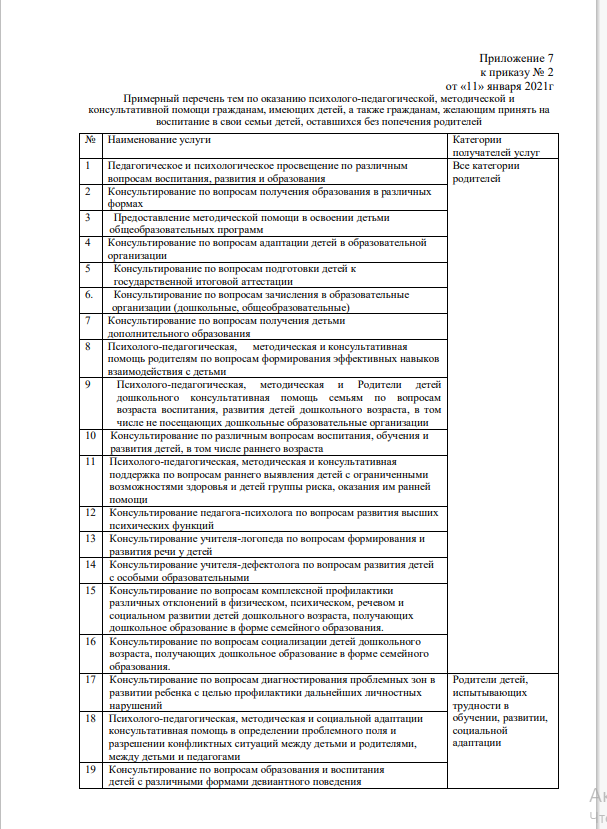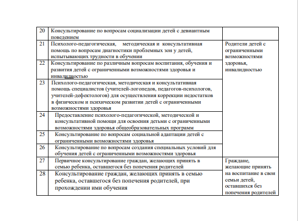 Перечень локальных нормативных актов, регламентирующих порядок предоставления услуг: